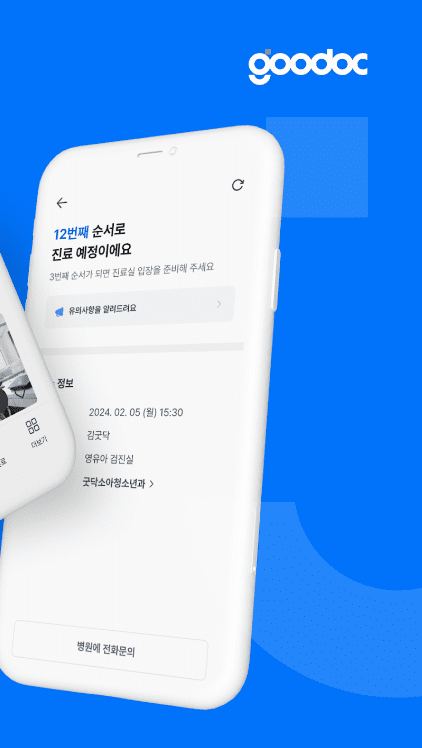 다음으로 추천하는 비대면 진료 앱은 굿닥 입니다. 굿닥은 앱으로 접수하고 진료 순번을 확인할 수 있는 장점이 있습니다. 굿닥에서 제공하는 서비스는 다음과 같습니다.