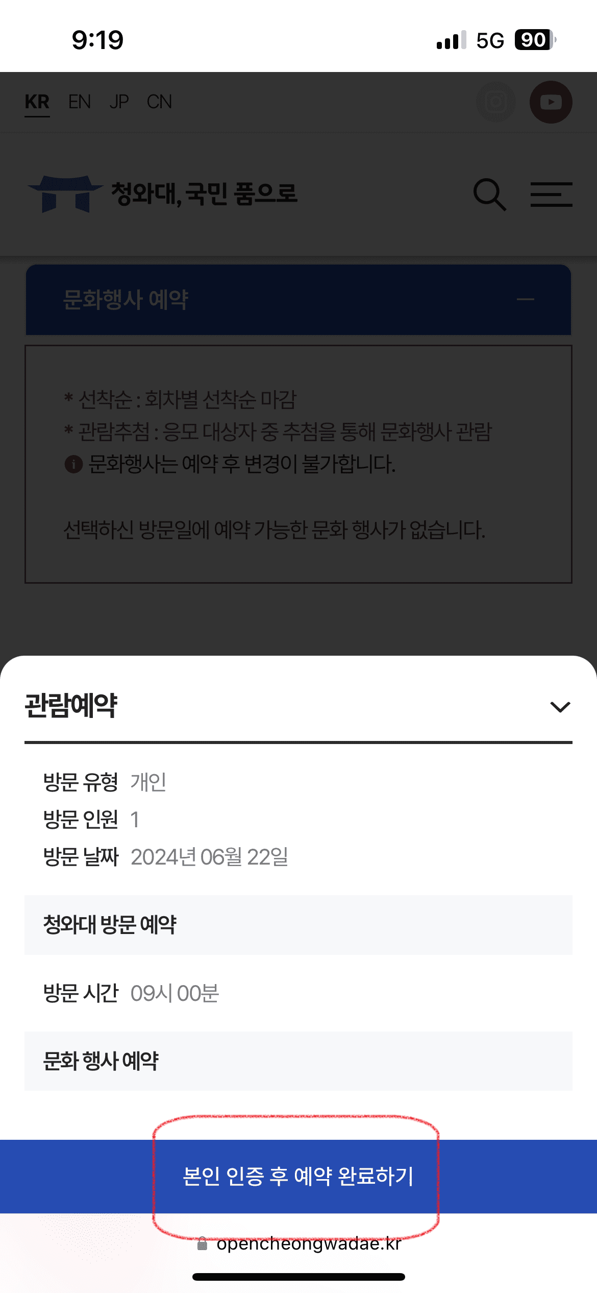 1.6. 청와대 관람신청 예약확인 및 취소방법