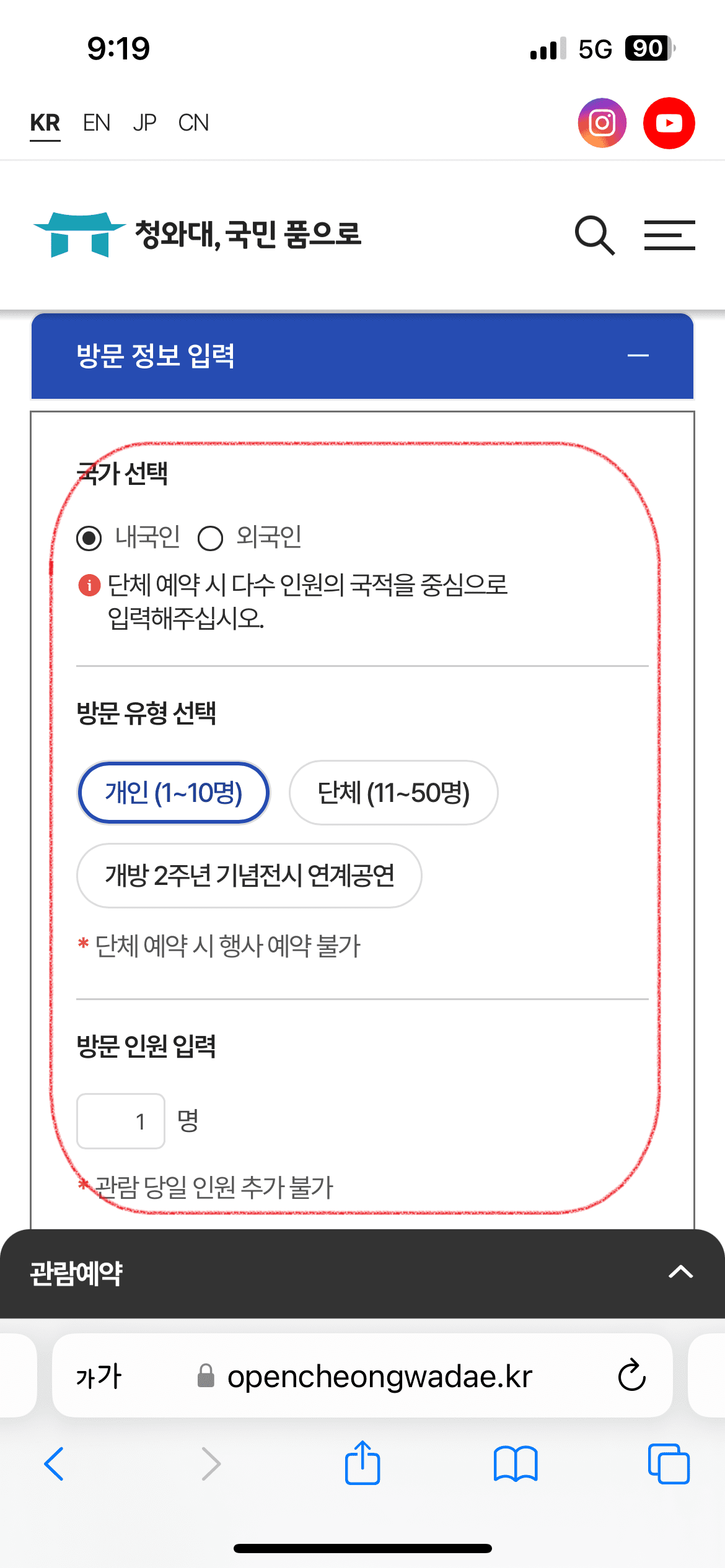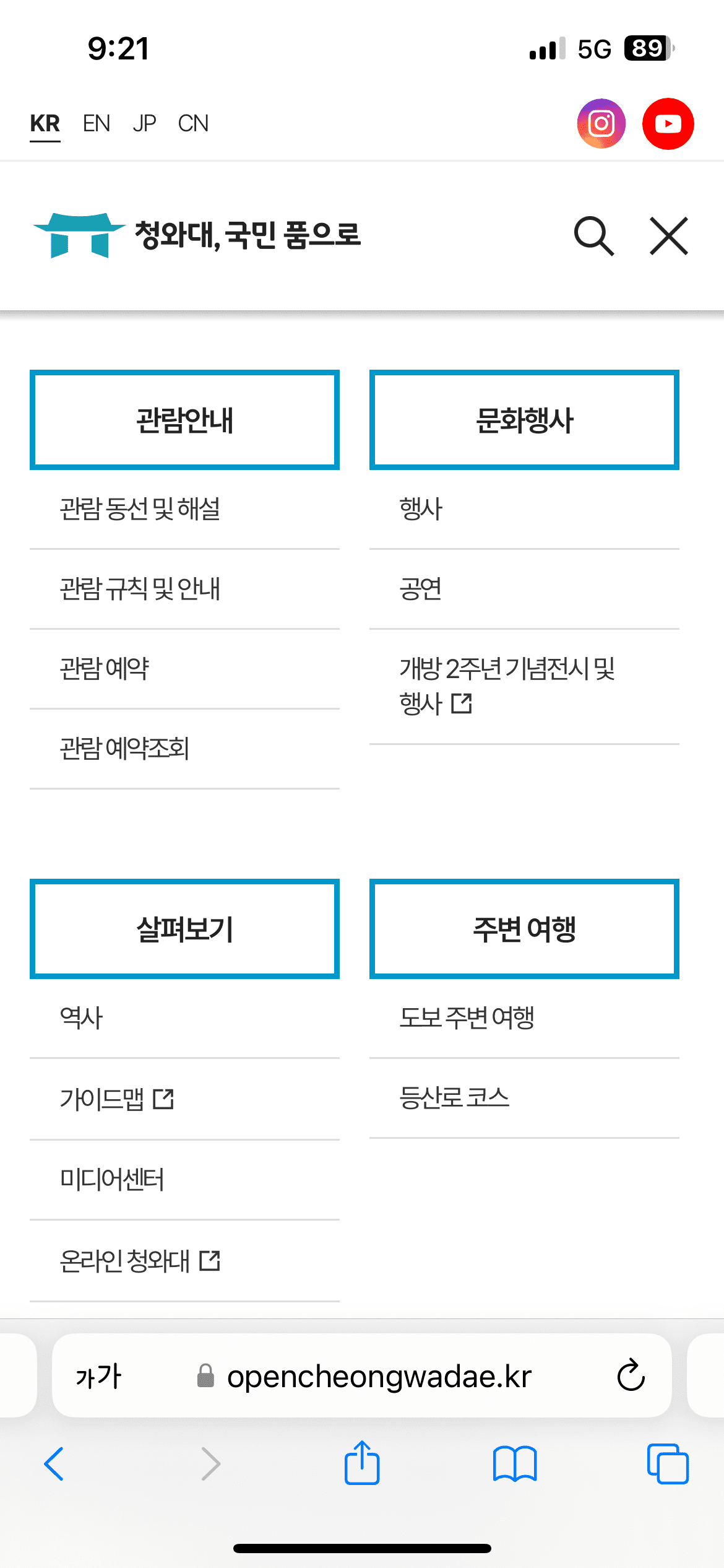 1. 청와대 관람신청