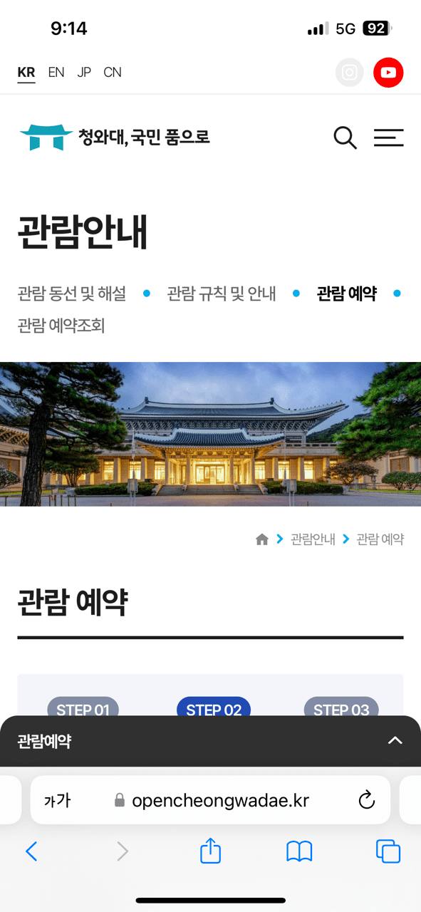 1.2. 청와대 관람신청 방법 (온라인 예약)